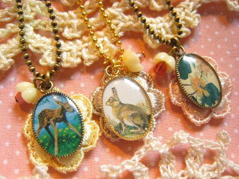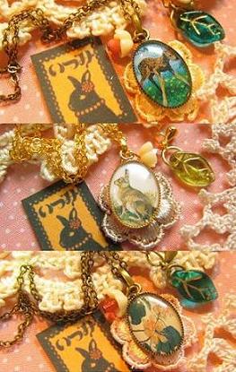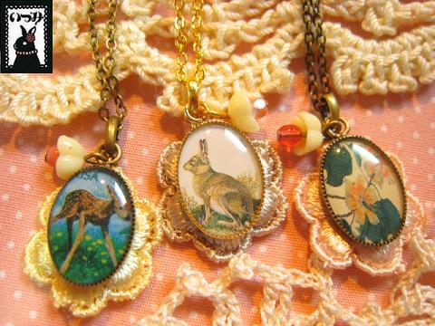 森に住んでいる動物たちや、森に咲くお花の小さなかわいい物語を感じるような、プチガーリーなネックレスです。