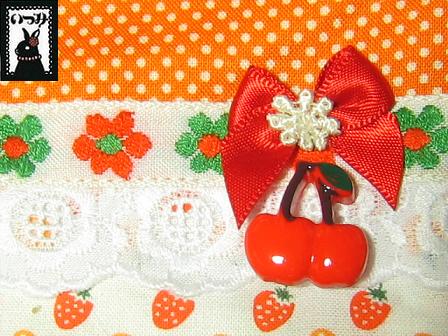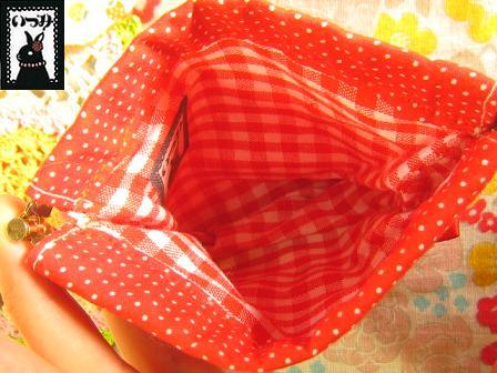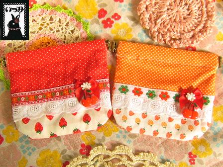 ドット柄と苺柄を合わせた、乙女チックなデザインのバネポーチです。