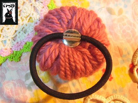 中心のくるみぼたんは、ヘアゴムのものよりも大きいサイズになります。